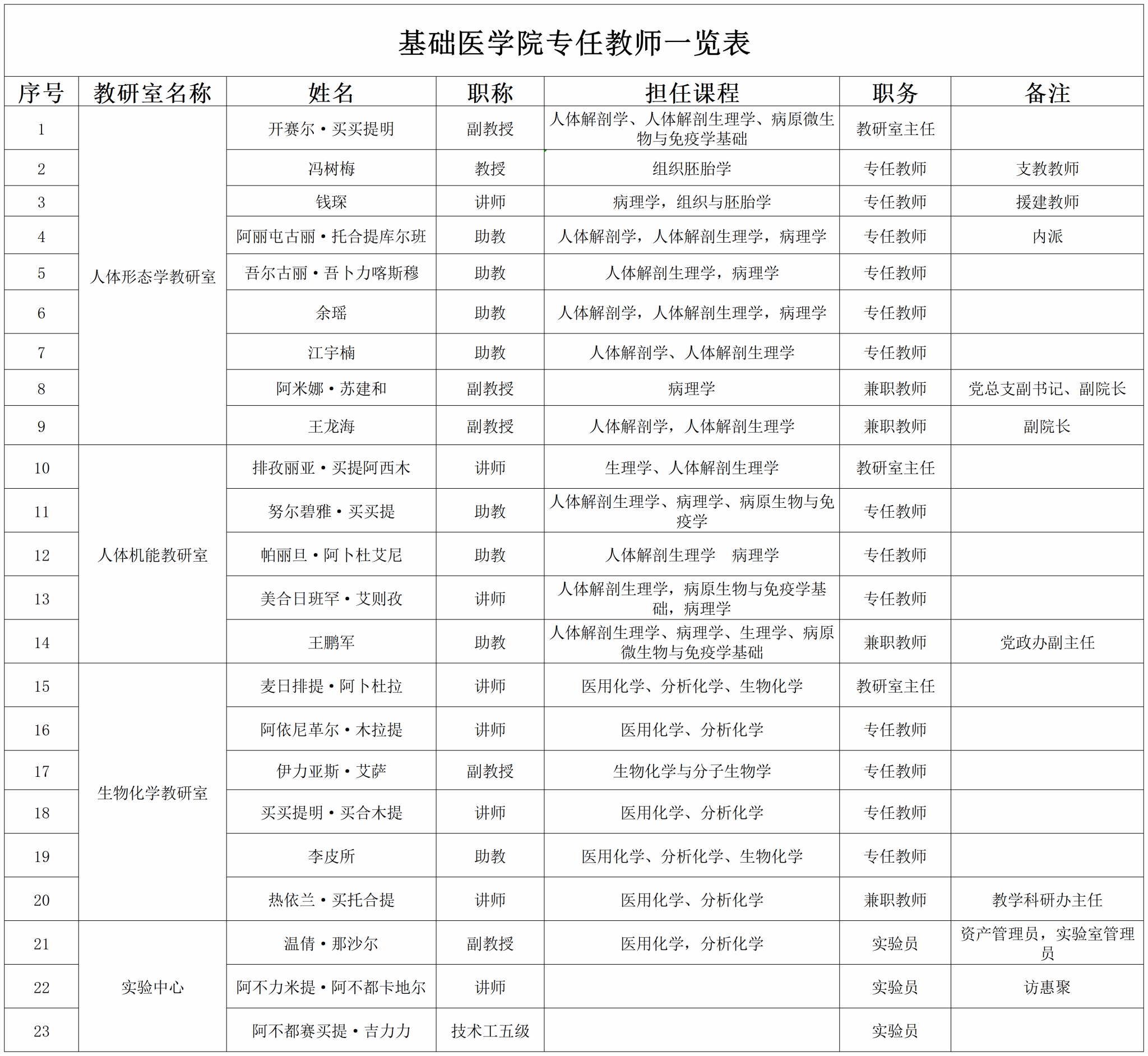 基础医学院专任教师一览表